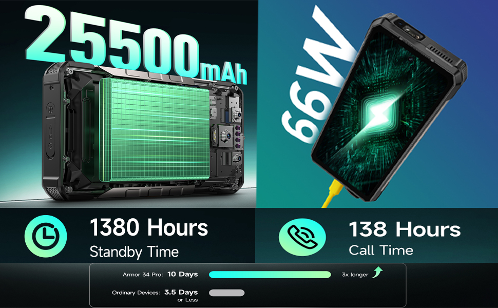 The Armor 34 Pro houses an astonishing 25,500mAh battery, a capacity that rivals many power banks . This isn’t just a number on a spec sheet; it translates to real-world endurance that is frankly staggering.